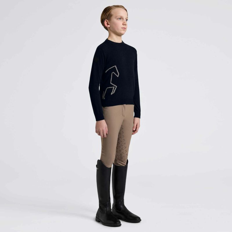 【C/T】W/Jacquard Horse Cashmere Blend Crew Neck Sweater