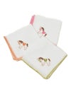 手縫いで刺繍が施されたオリジナルハンカチです 素材はコットンです それぞれ縁取りと可愛く刺繍されたポニーの色がお揃いになっています 使いやすいサイズで、上品でもあります プレゼントにも喜ばれます 素材:コットン カラー:ピンク、オレンジ、グリーン、ブルー サイズ:22.5cm×22.5cm