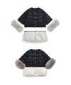 パーツ類(ファーやぺプラムなど)はチャックで取り付けた際に前後2cm程度の誤差が生じる場合がございます。こちらは良品の範囲内とさせていただいておりますので、予めご了承ください。
