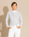 テクニカルな伸縮性のある生地を使用した長袖の競技用シャツです