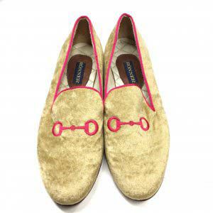 ベルベット生地に丁寧に刺繍されたビットがオシャレを彩ります